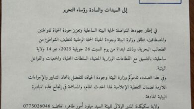 الجزائر، [ 25 يوليو 2025] – في إطار مساعيها المتواصلة لحماية البيئة الساحلية وضمان جودة الحياة للمواطنين والمصطافين، أعلنت وزارة…